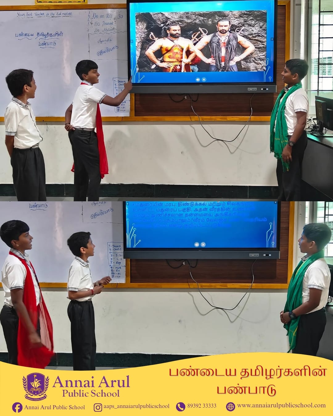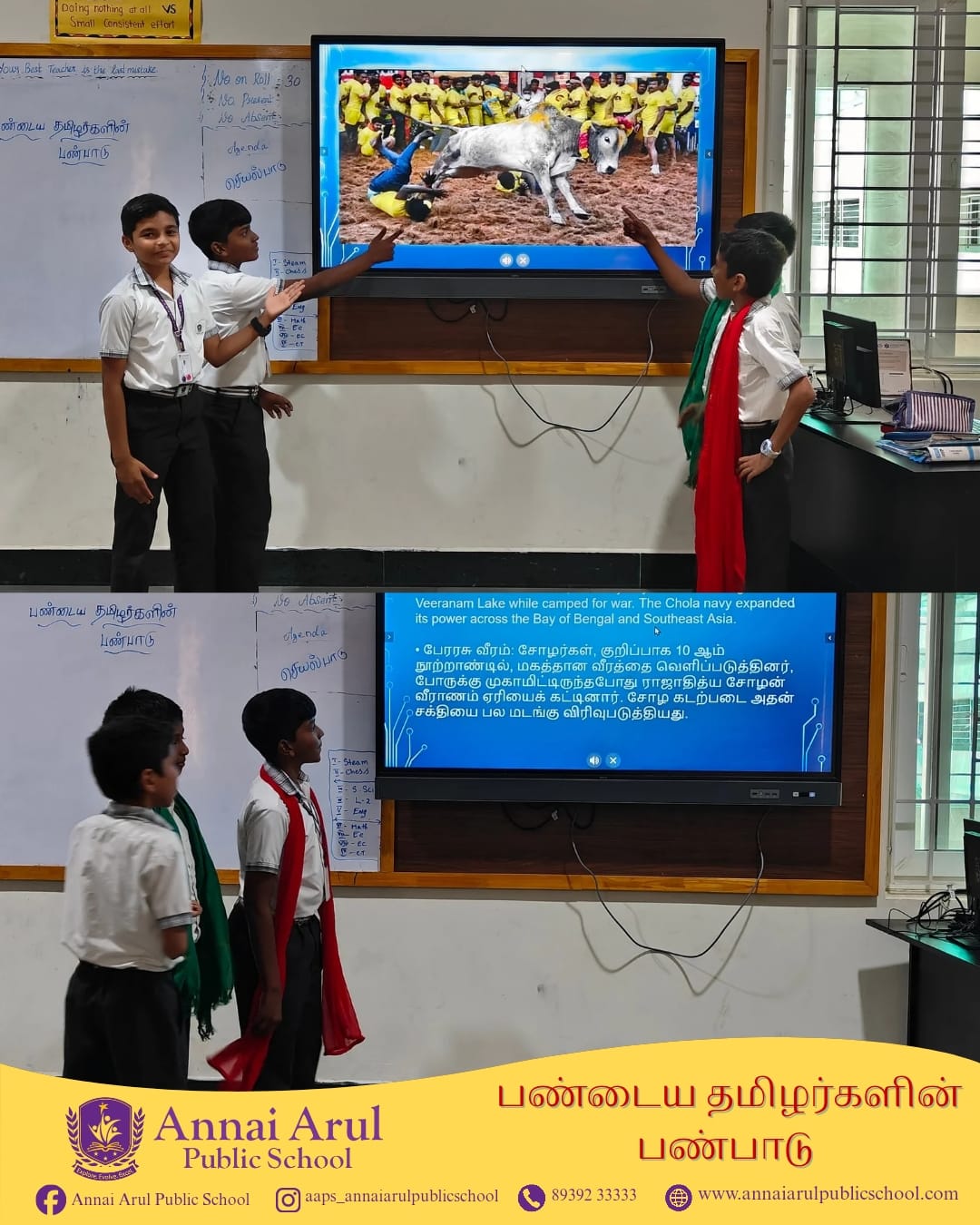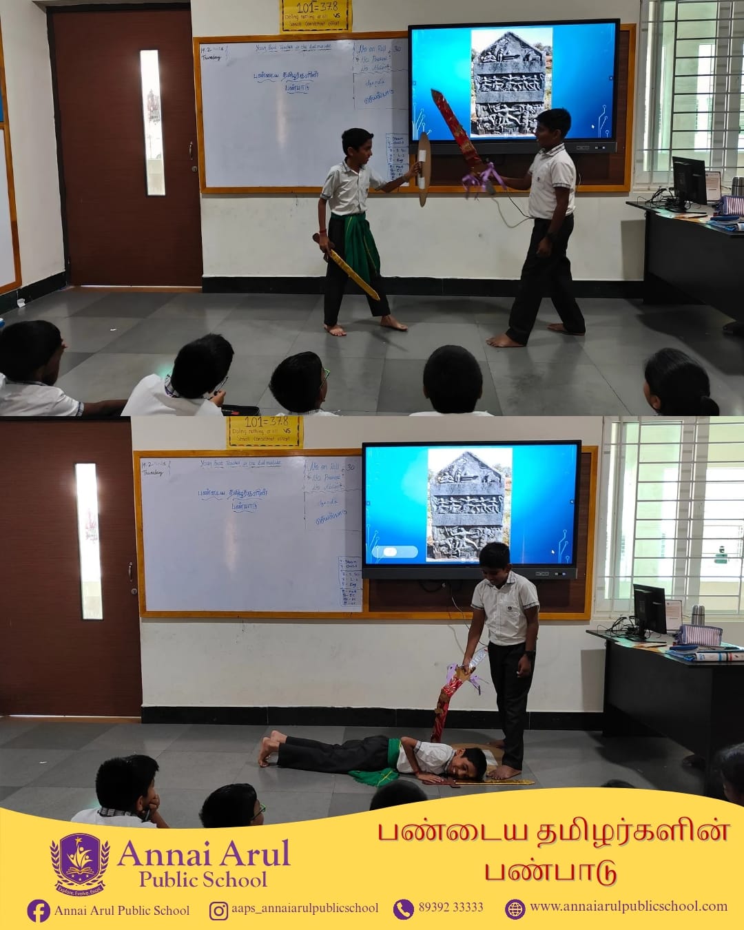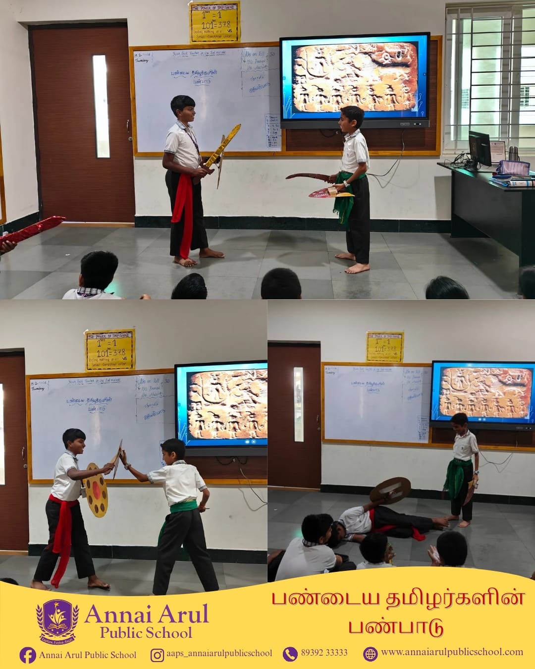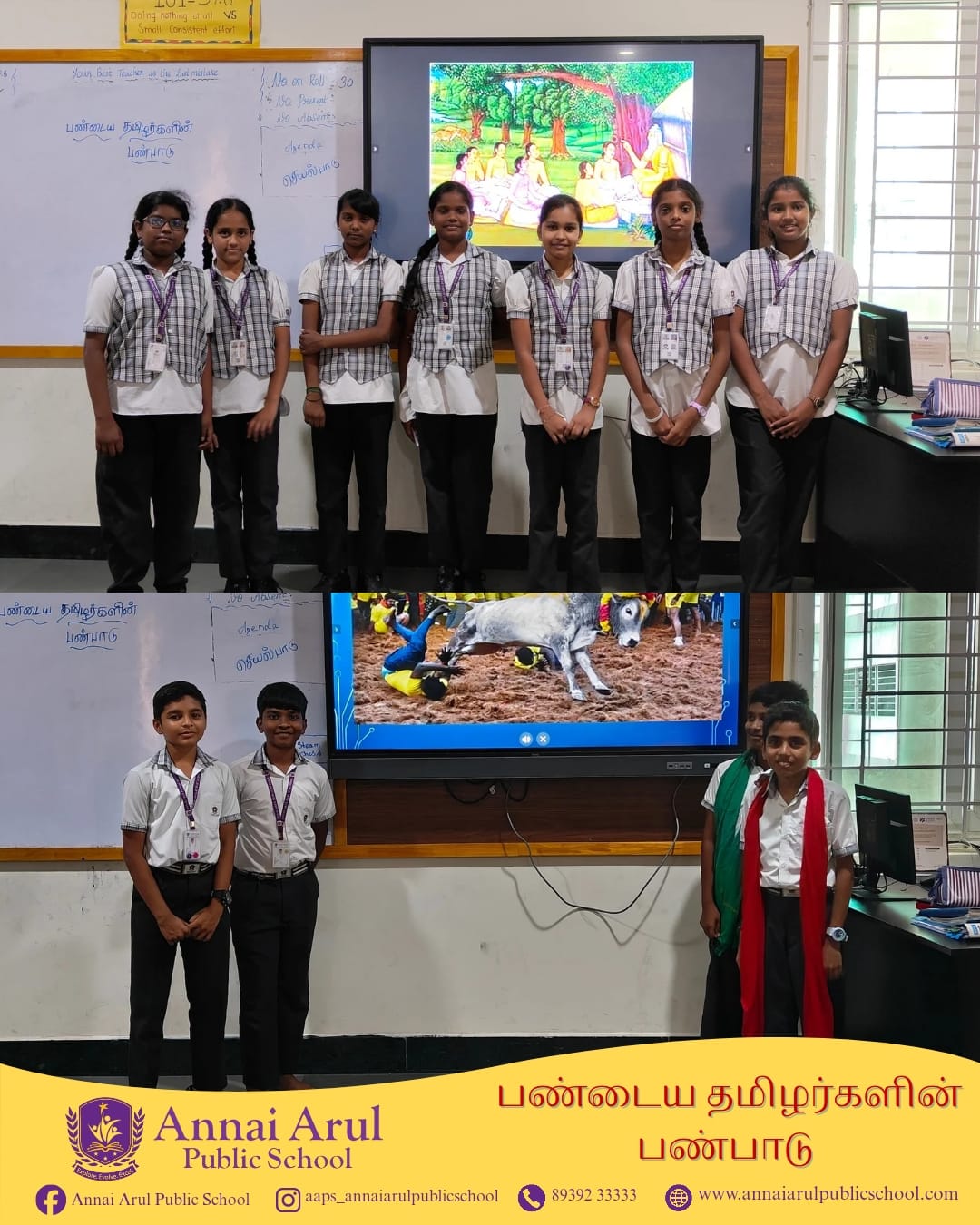 Grade VI students explored the rich culture of Ancient Tamils with great interest and enthusiasm. They learned about the lifestyle, traditions, and values of early Tamil civilization. Discovering the greatness of the Sangam era filled them with pride.