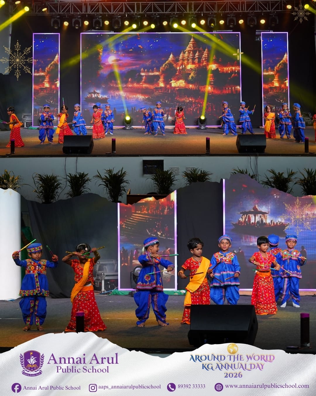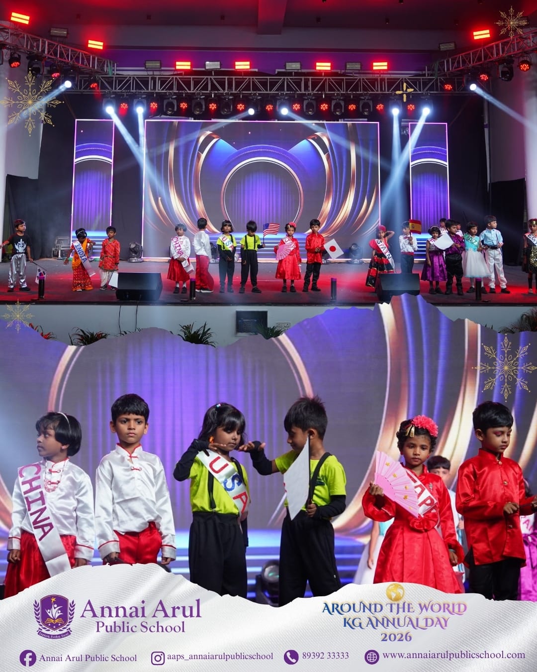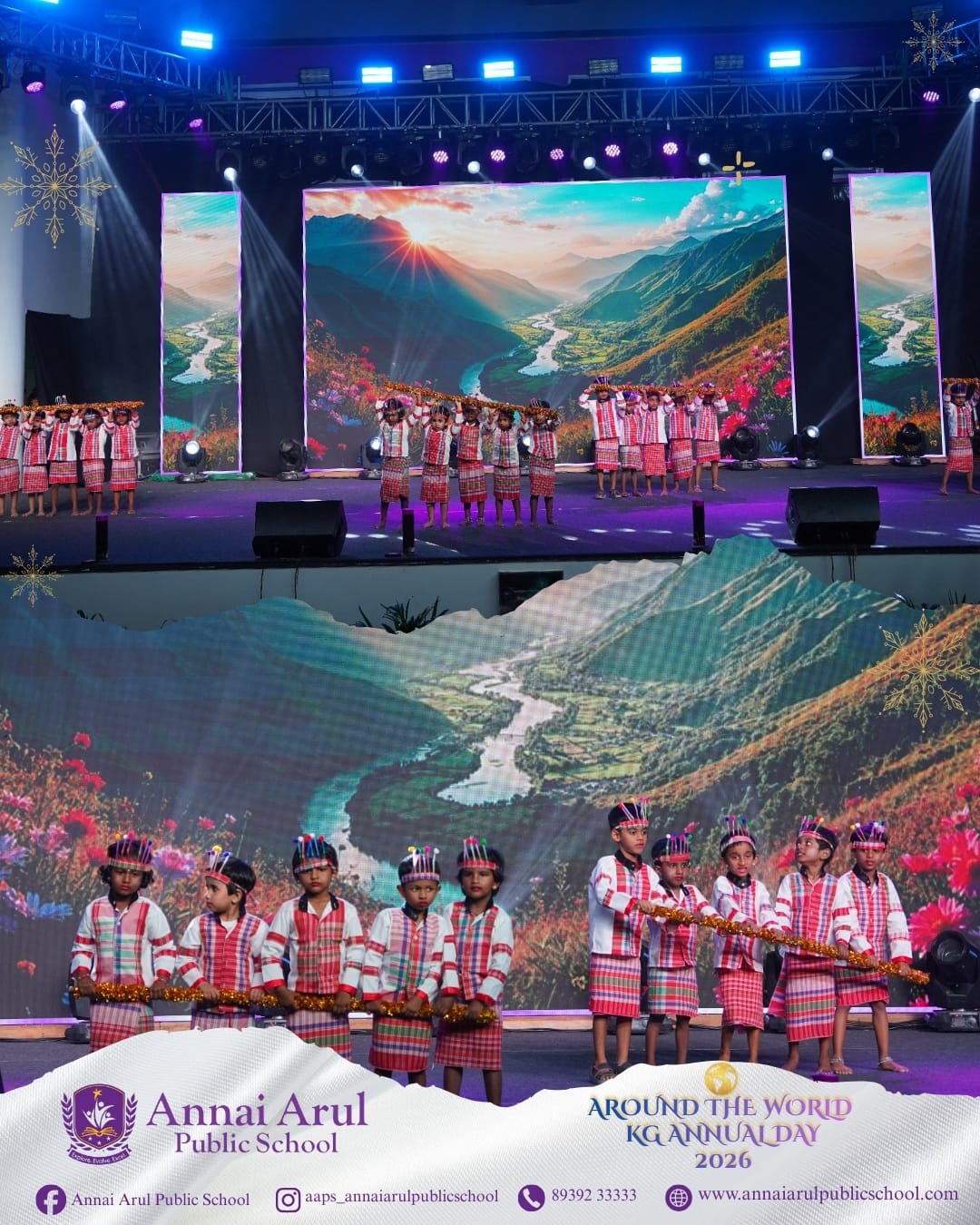 Our KG students mesmerized the audience with their lively dance and song performances based on the theme “Around the World.” 🌍🎶