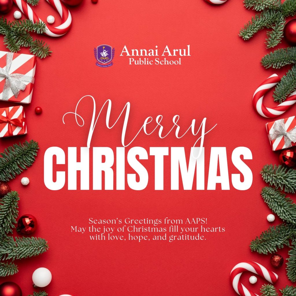 Annai Arul Public School wishes you a Merry Christmas.❄️🎄🎅May this blessed season bring peace, joy, and prosperity to you and your family. #AnnaiArulPublicSchool #SchoolChristmas #ChristmasAtSchool #SchoolFamily