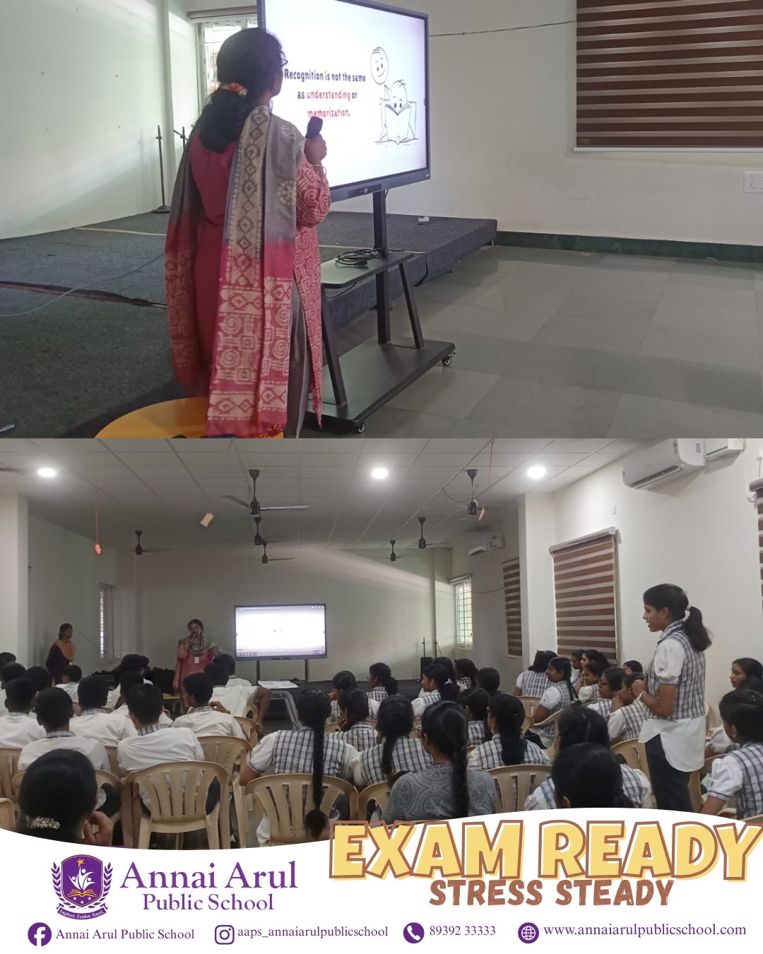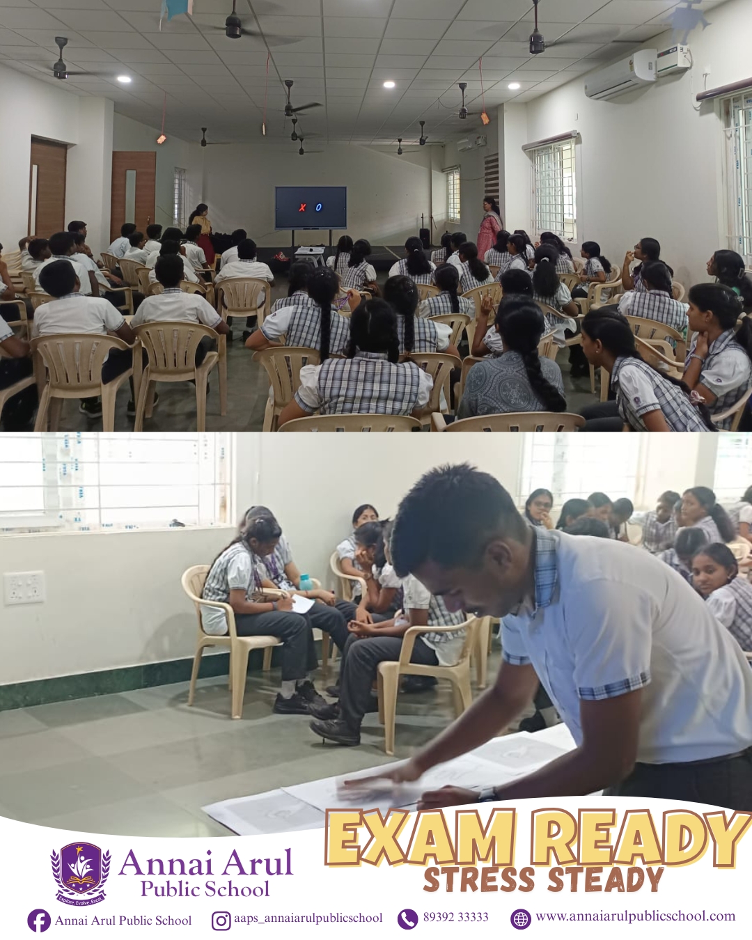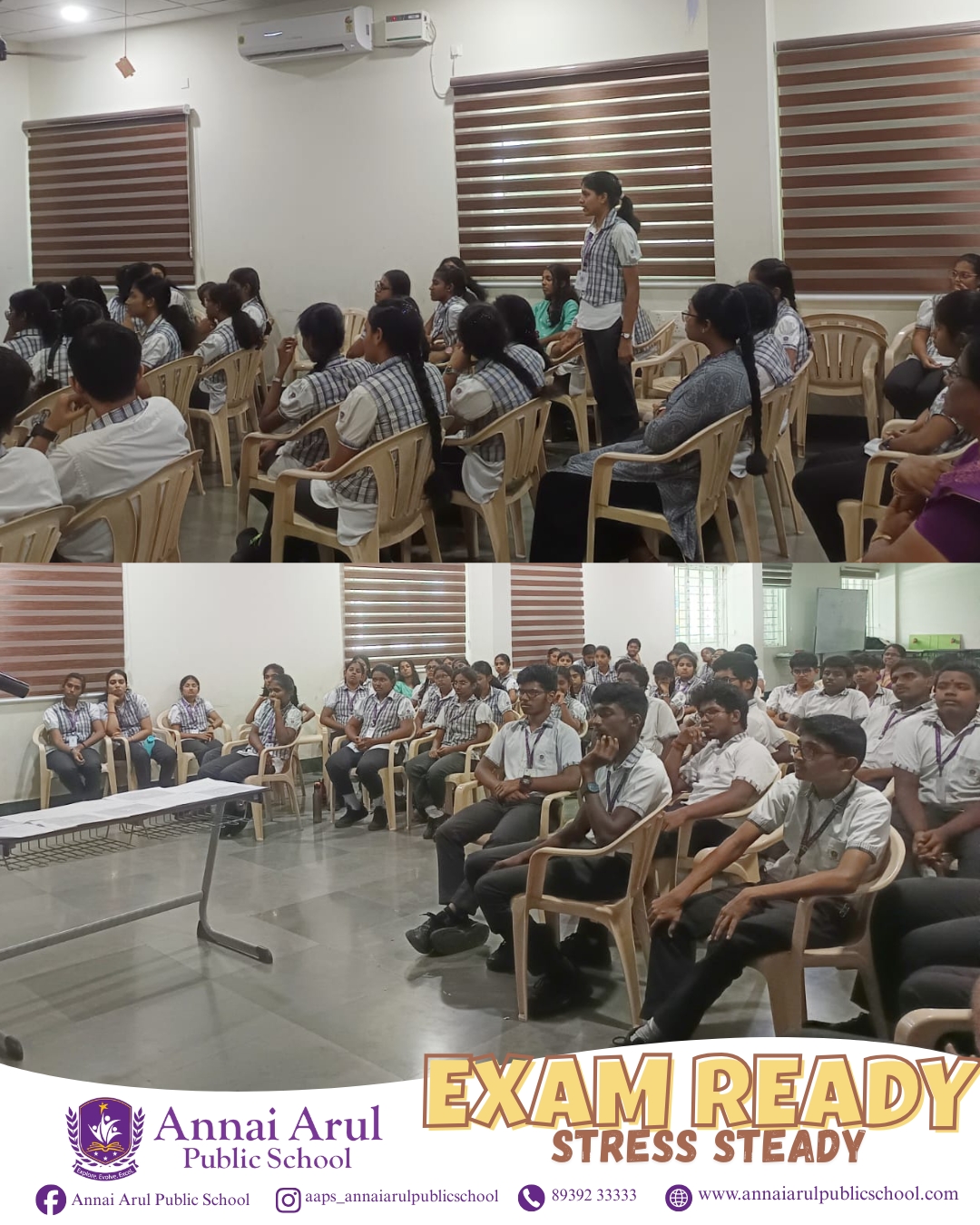 A focused session on Empowering students for Exams was conducted for Grades X and XII on building the right mindset for studies and making learning more effective. Students were introduced to practical techniques to improve focus and manage exam stress with a balanced approach. The session concluded with a stress-release activity, helping them unwind and adopt healthier ways to cope with pressure.
