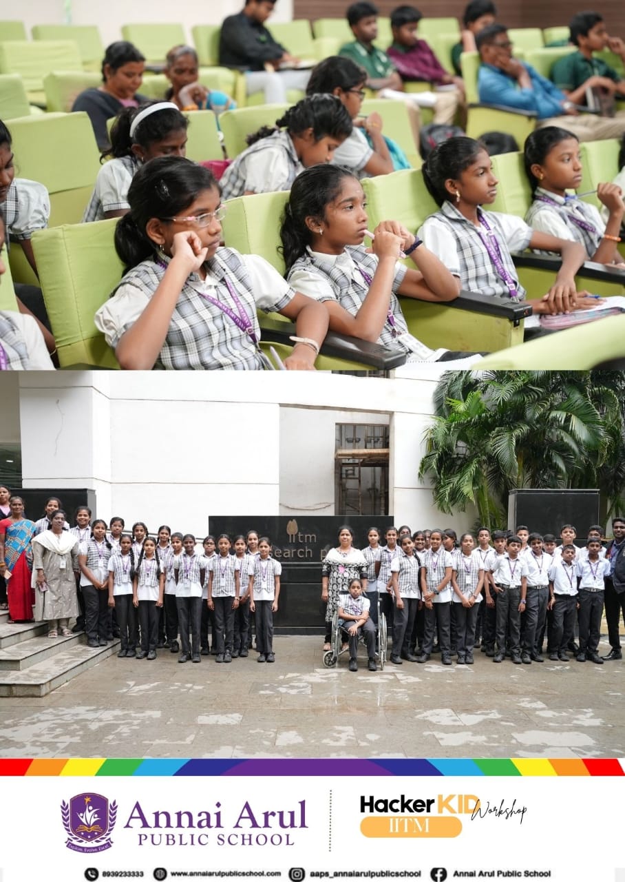 Our students of Annai Arul Public School had an exciting and enriching day at IITM, where they participated in the HackerKid Workshop. Through fun and interactive activities, they were introduced to the world of coding and technology exploring how creativity meets logic in the digital age. The workshop helped them build problem-solving skills, teamwork, and confidence as they experimented with coding concepts hands-on.