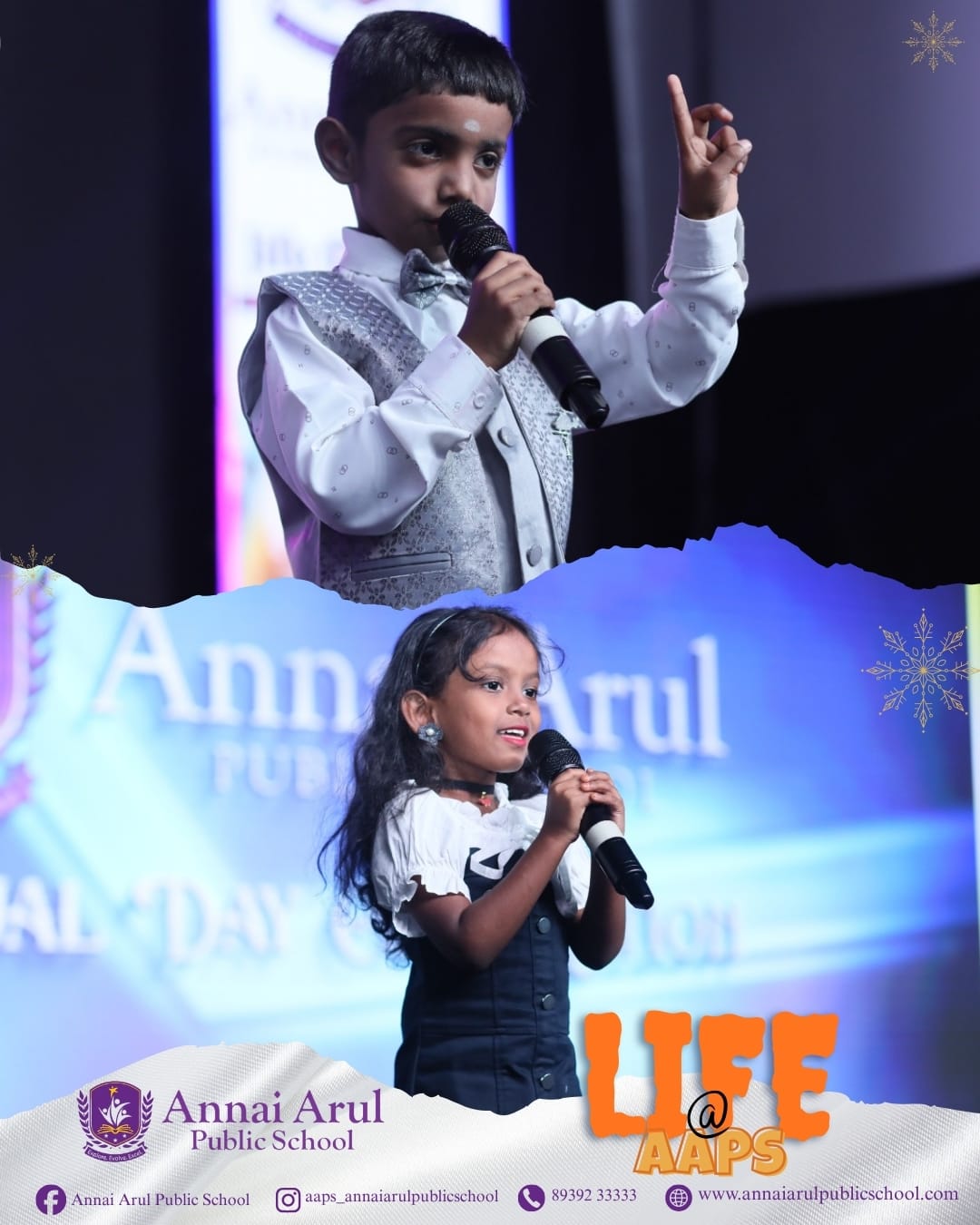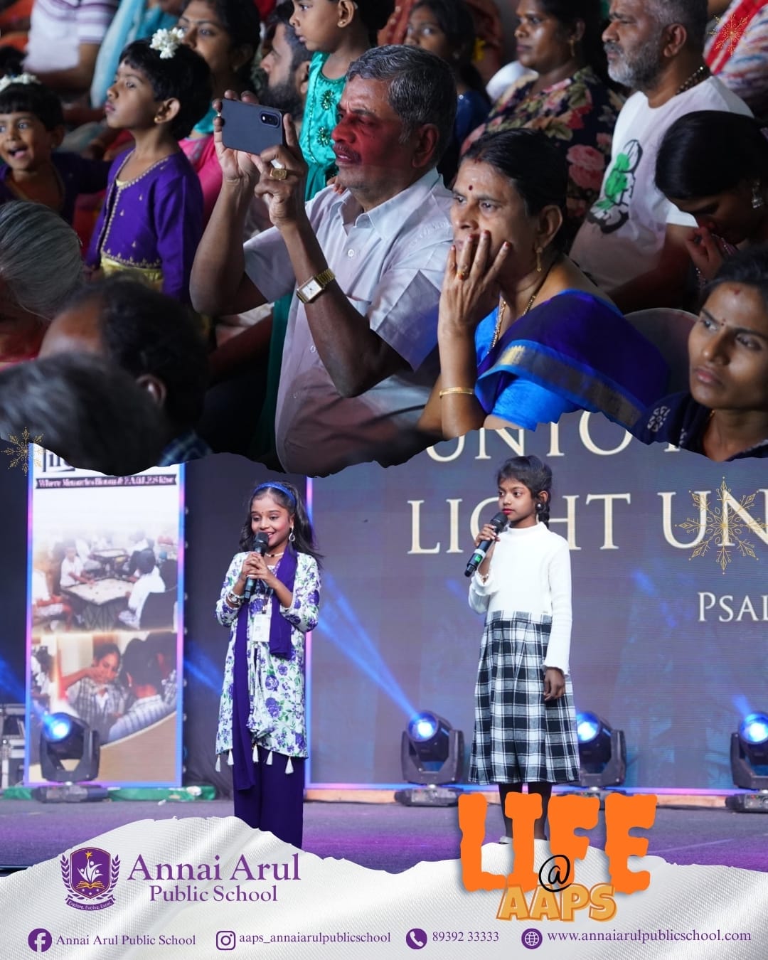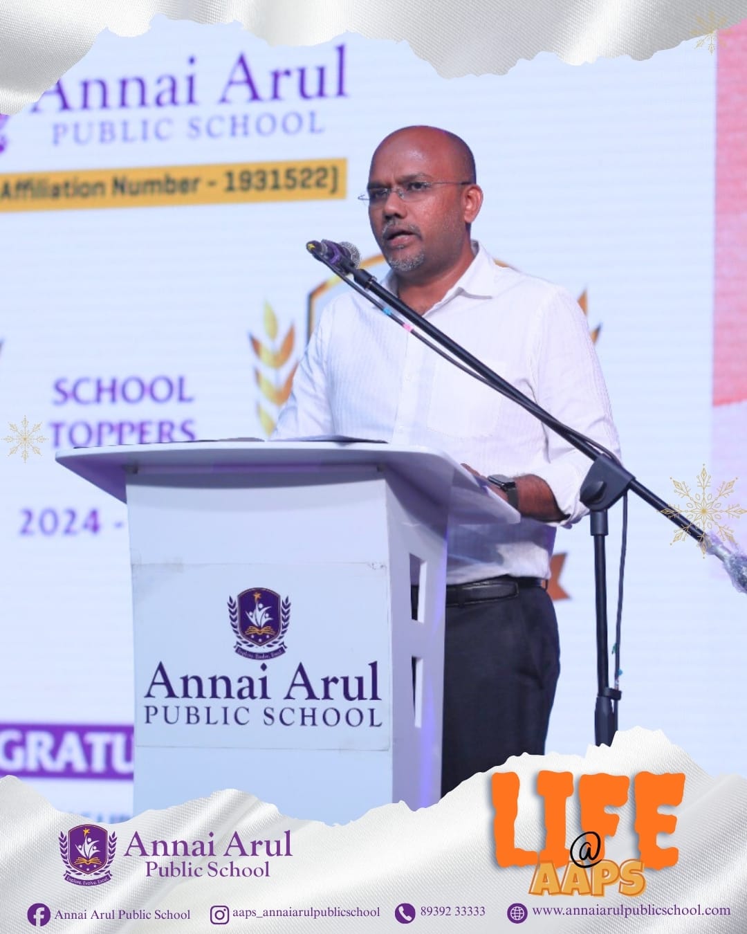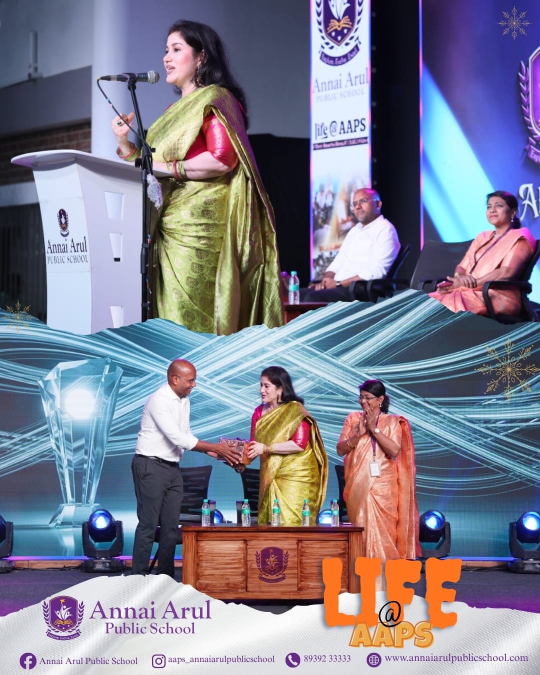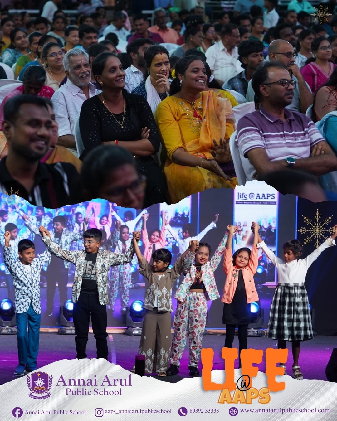 The “Life @ AAPS” Annual Day theme was creatively brought alive, with students portraying alumni and reflecting the joyful journey of learning at AAPS. Our Principal, Ms.Rosalind Jacob warmly welcomed the audience, setting the tone for the celebration. Our Dean Mr. Christopher Antony Joseph proudly presented the school’s achievements. Educationist and visionary leader Ms. Sara Alexander, Correspondent and Principal of the Spartan Group of Schools, addressed the gathering with valuable insights on mindful parenting. Our academic toppers were also honoured by our Chief Guest, recognizing their hard work and excellence. The evening stood as a beautiful reminder that life at AAPS is truly enriching, inspiring, and full of happiness.