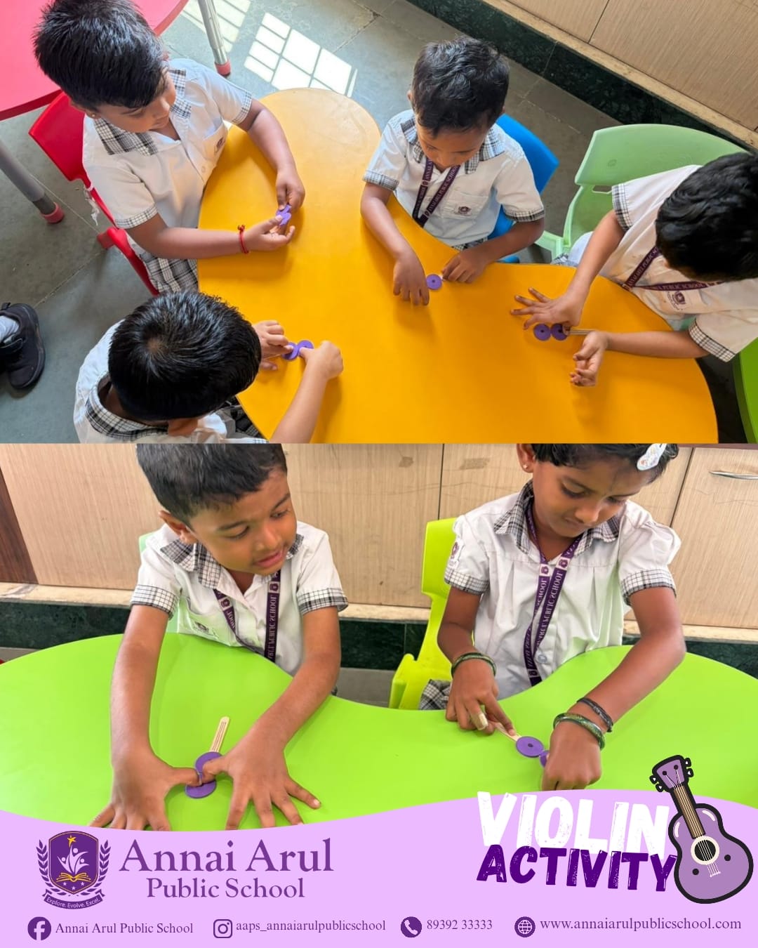 Our Pre-KG little stars joyfully explored the Chikku Tree activity, creatively crafted violins using coloured paper and paint, and enjoyed a fun paper-crushing fruit craft! 🌳🎻🍎 Through these engaging hands-on activities, students learned the benefits of trees, discovered the beauty of musical instruments, strengthened fine motor skills, improved hand-eye coordination, and enhanced creativity and sensory development. Learning truly came alive through play, art, and exploration!