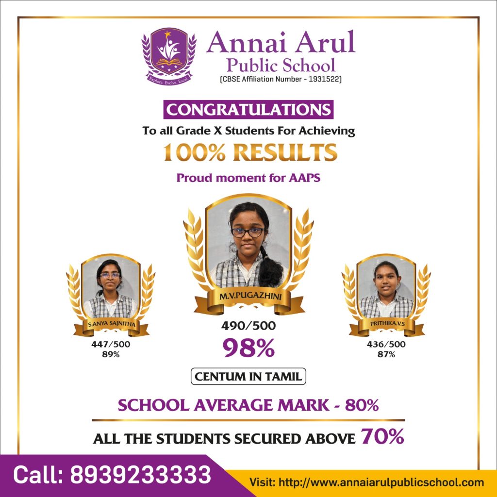 •S.Anya Sajnitha secured 2nd position with 89%.