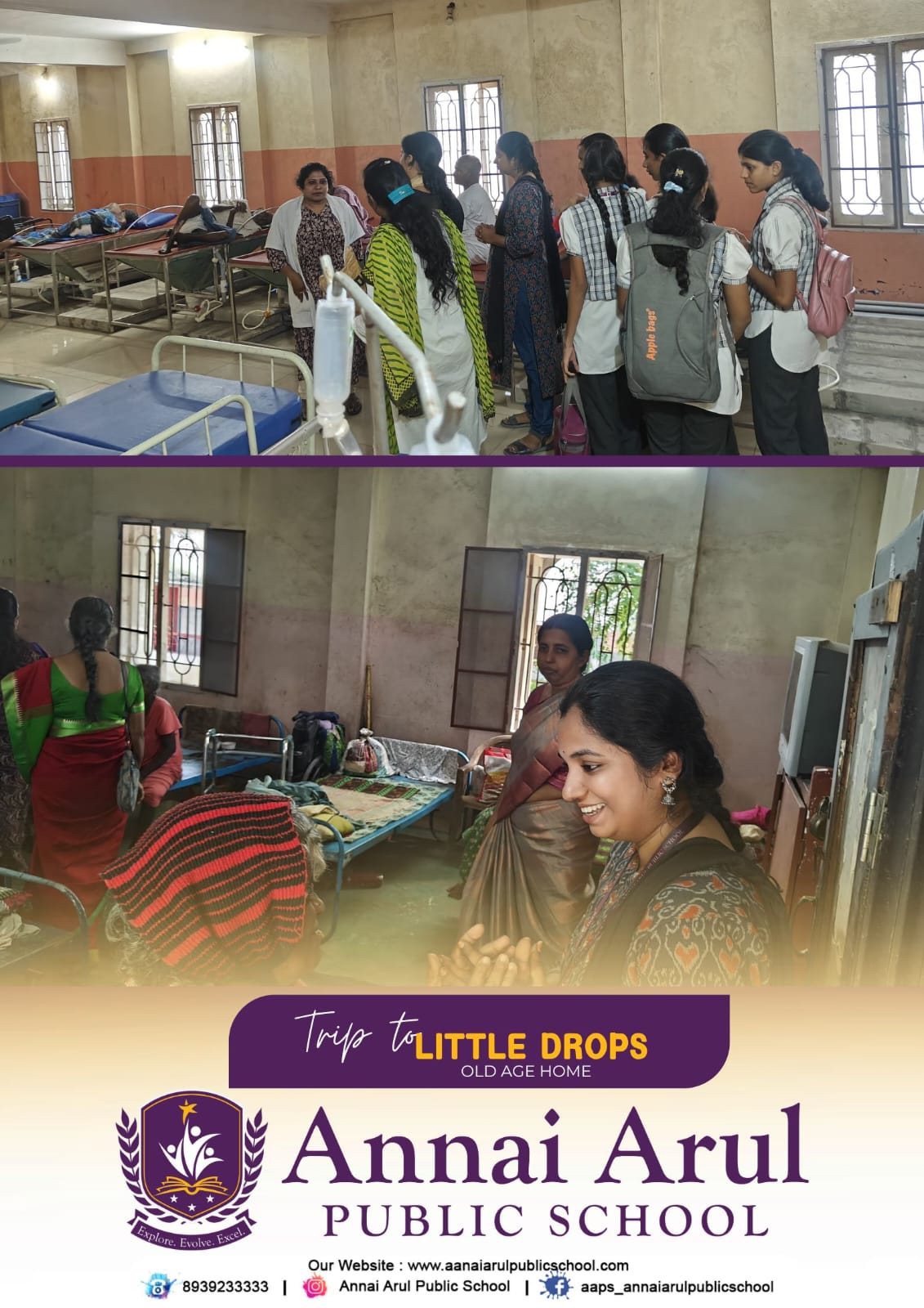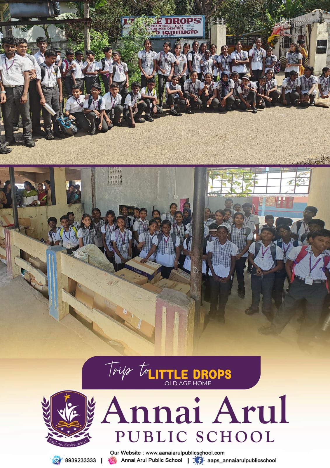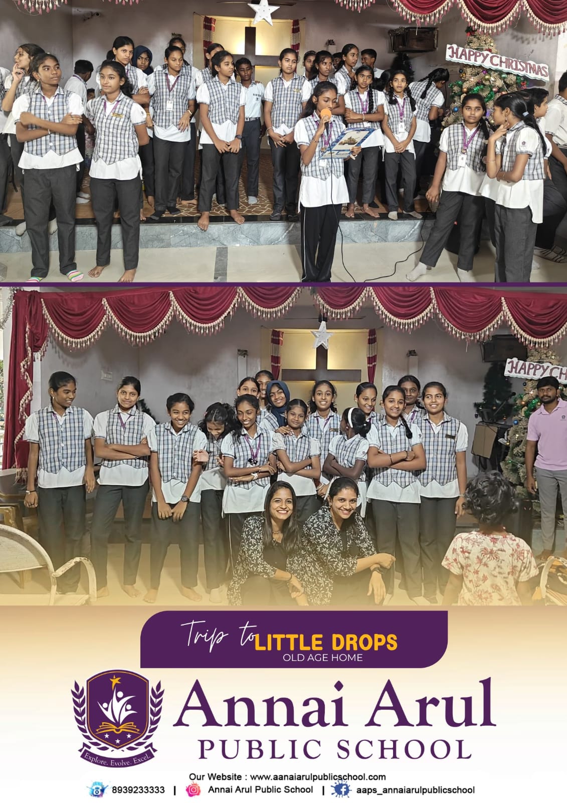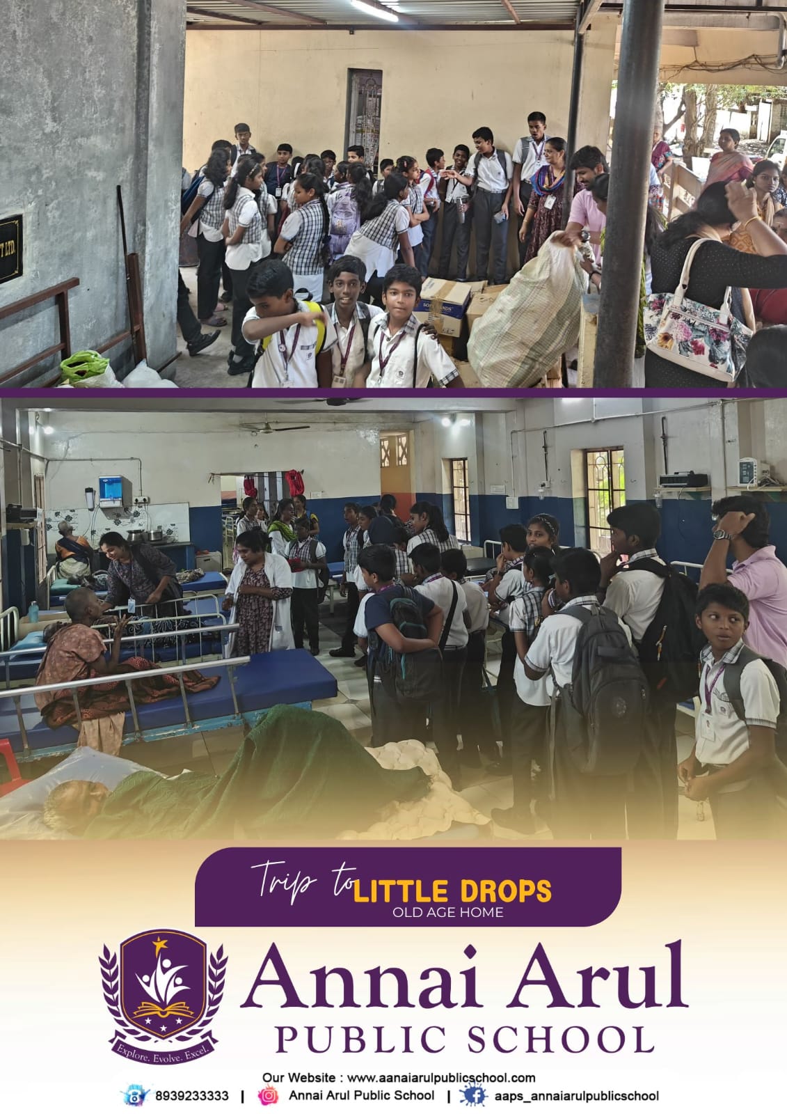As part of the Joyful Giving Initiative at Annai Arul Public School, our students and parents came together in a beautiful display of generosity and compassion. Through a well-organized donation drive, they collected food grains and essential items to support the elderly residents of Little Drops Old Age Home.