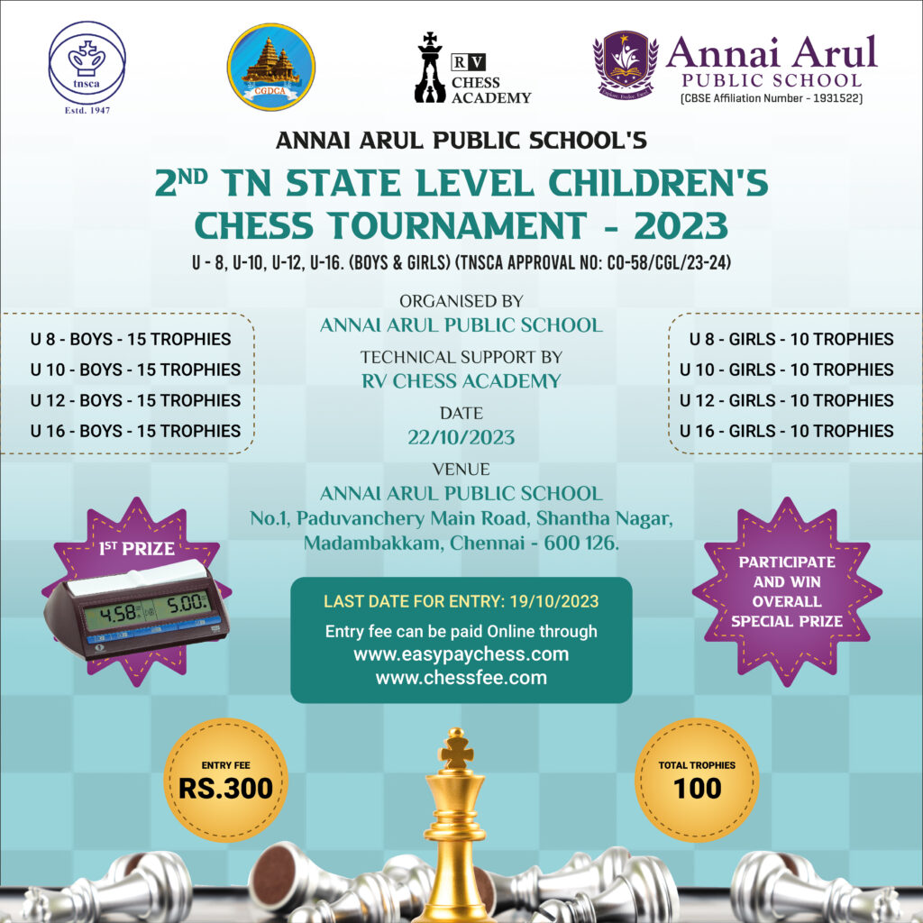 ANNAI ARUL PUBLIC SCHOOL’S 2nd TN STATE LEVEL CHESS TOURNAMENT 2023