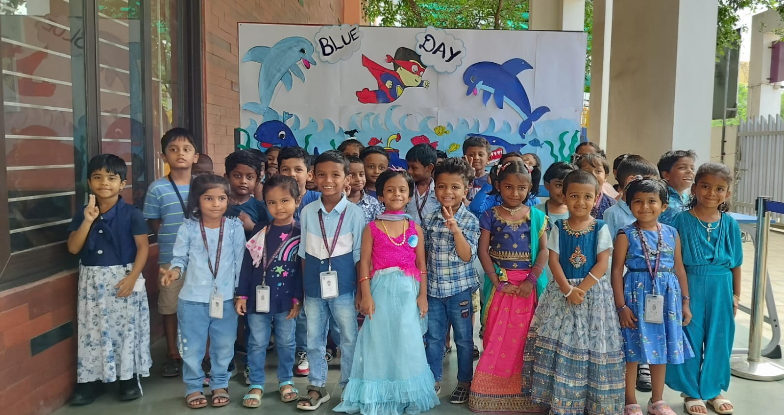 The kindergarten section at Annai Arul Public School celebrated Blue Color Day with a “Splash of Fun”!