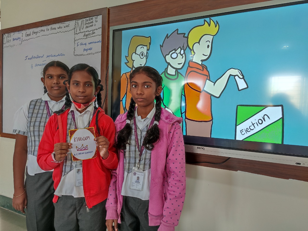 Voting is a right. To make this concept even more clearer to our students, a mock election was conducted. Starting from Filing the nominations, campaigning for their party, designing the party symbol, preparing the election manifesto etc, the efforts put in by the students was incredible. Each student was assigned a role and they understood their job responsibilities and did their role with complete dedication. Our staff voted for our children and the results were announced. It was a fun filled and a thorough knowledge sharing activity.
